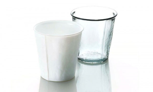口元の丸みや側面の貼り合わせによる縦線など、紙コップそっくりのリアルさを追求したデザインがとてもユニーク。使い捨てではない、サステイナブルな紙コップをぜひお試しください。ガラス表面のなだらかな凹凸が手になじんで持ちやすく、ドリンクのほかにデザートカップなどにもぴったりな、小さめの使いやすいサイズです。※グラス外側は艶消し加工を施しています。