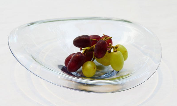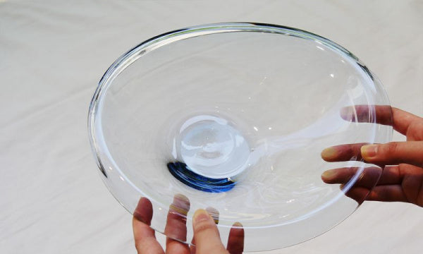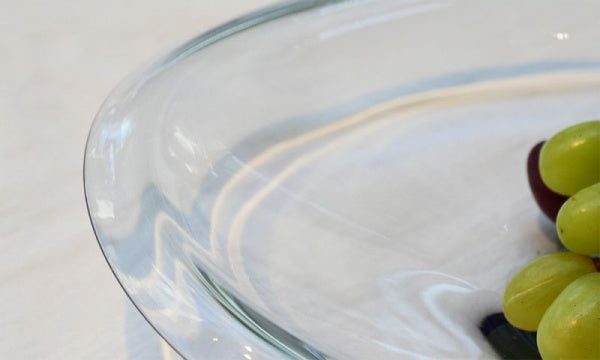溶けたガラスが固まって変化していくときの柔らかさや揺らぎの表情を形にした、軽やかな風を感じていただけるような器です。ガラスを知り尽くした熟練の職人の手によって製作されています。サラダ、パスタなど、色々な料理を演出します。サイズは2型、21cmと26cmがございます。 ※リサイクルカラーはいろいろな色のガラスくずを混ぜ合わせて溶かすため、1点ごとに違いが生じます。あらかじめご了承ください。 ※溶けきらない物質により様々な模様や、細かな気泡が入ります。