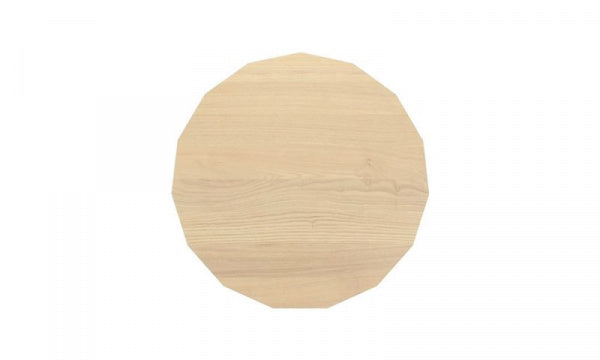 樽のような脚や15角形の天板など、カラーウッド(Color wood)の特徴そのままに、クリの明るい木調が際立つナチュラルな仕上げにまとめました。ベースとなる部分は、日本古来の技法「雇い実接ぎ(やといさねつぎ)」を応用し、台形にカットされたパーツを独特な樽形状となるようにつなぎ合わせて構成されています。