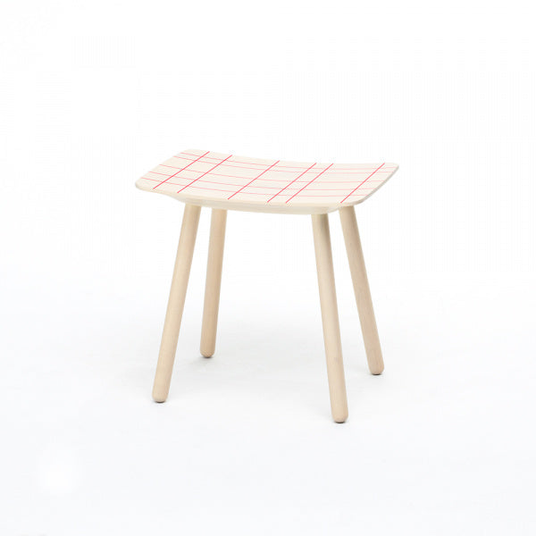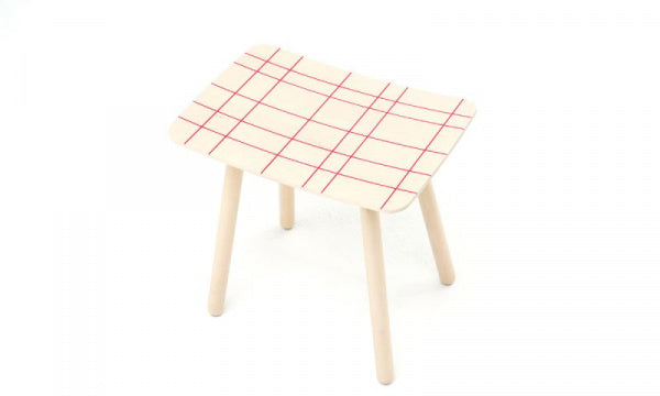 ミニマルかつ精緻なデザインが特徴的なスツール。座面に施された鮮やかなグリッドのラインは、溝に色入れをした後、はみ出した部分の塗装膜(厚さ数10ミクロン)を手作業で削るという卓越した職人技によるものです。また、座面の裏側の有機的な形状や脚の接合方法にもこだわりを見せています。コンパクトサイズなカラースツール(Colour Stool)は、玄関、キッチン、ベッドルーム、リビングなどいろいろな場所に移動させながら、さまざまシーンで使うことができます。