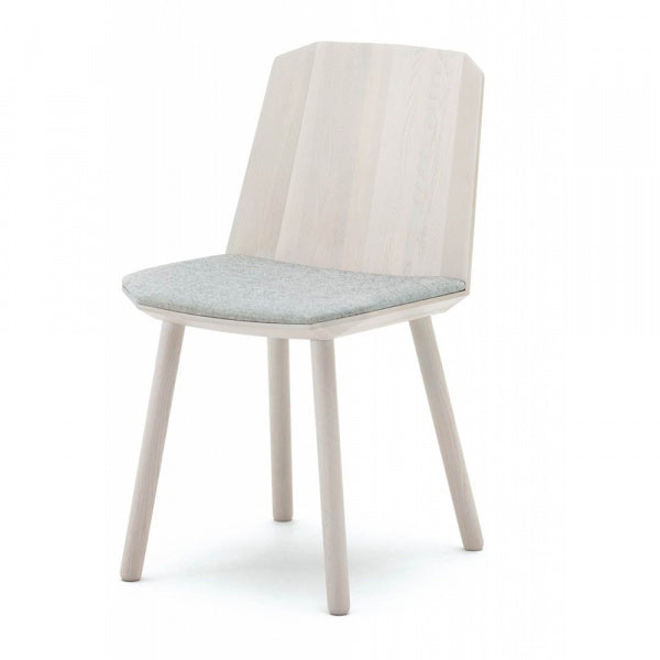 カリモクニュースタンダードのコレクションのアイコン的存在となっているカラーウッドテーブル(Colour Wood Table)のファミリーとして加わったカラーウッドチェア(Colour Wood Chair)。日本産広葉樹の小径木の有効活用という基本的なコンセプトはテーブルと同じですが、この椅子の製作にあたって、カリモクは木工技術において更なる挑戦をしています。シンプルさと複雑さを行き来するようなグラフィカルな構成のシート部。これを作るために、ナラ材の小さく細い木材を集め、固定部品が見えないようにシェル状に組み立てています。 カラーウッドチェア(Colour Wood Chair)は、すでに展開しているカラーウッドテーブル(Colour Wood Dining Table)と完璧な組み合わせで、家でもコントラクトユースでもどちらにも対応できるアイテムです。ヘルツォーク&ド・ムーロンがデザインしたKvadrat社のファブリックが張り込まれた座面は、非常に優れた座り心地の良さを実現しています。