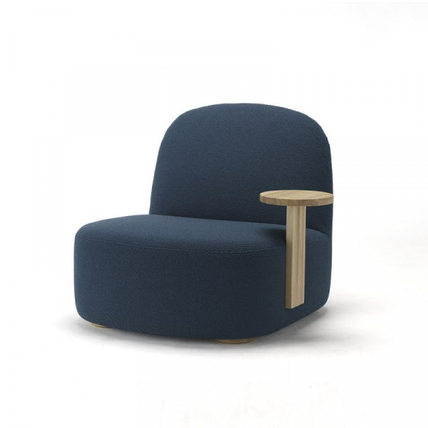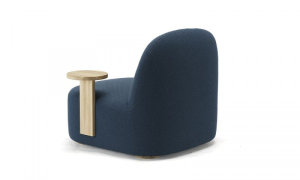 すっきりとした丸みを帯びた柔らかな形状と直線や幾何学的な要素のコントラストがベースとなっているミニマルなデザインです。ポーラーラウンジには、よりリラックスできる座姿勢の、座面が低くて大きいバージョンと、カフェのテーブルとセットで使用するのにも適した背を正した座姿勢向けの座面が高くてコンパクトな2つのバージョンがあり、どちらもコントラクトでの使用を想定してデザインされています。ポーラーラウンジチェアLは、ロビーやコワーキングスペースからリビングルームまで、プライベートスペースやパブリックスペースの様々なシーンにフィットするようにデザインされています。特徴的なゆったりとしたプロポーションが体にフィットし、しっかりとしていながらも柔らかな張り地と相まって、このチェアの座り心地は格別なものとなっています。また、個性的な木製サイドテーブル付きのアイテムもあり、張地は通常のKNSファブリックのほかに、クヴァドラ・フェブリック・ユニフォーム・メランジェという特別なファブリックをセレクトでき、独特の柔らかな表情と触感を提供します。脚とテーブルは、サスティナブルな方法で調達された国産ナラ材で作られています。テーブルの位置は、右左でお選びいただけます。