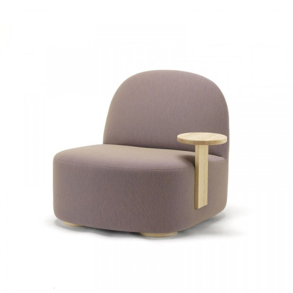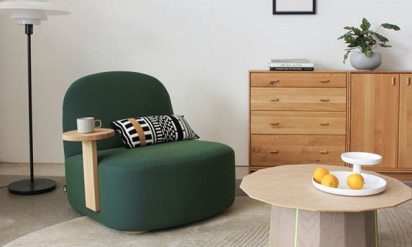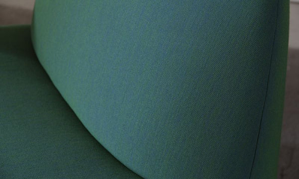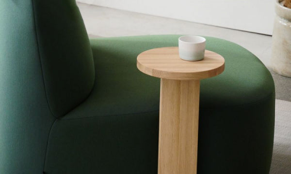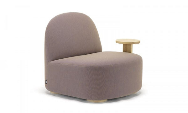 すっきりとした丸みを帯びた柔らかな形状と直線や幾何学的な要素のコントラストがベースとなっているミニマルなデザインです。ポーラーラウンジには、よりリラックスできる座姿勢の、座面が低くて大きいバージョンと、カフェのテーブルとセットで使用するのにも適した背を正した座姿勢向けの座面が高くてコンパクトな2つのバージョンがあり、どちらもコントラクトでの使用を想定してデザインされています。ポーラーラウンジチェアLは、ロビーやコワーキングスペースからリビングルームまで、プライベートスペースやパブリックスペースの様々なシーンにフィットするようにデザインされています。特徴的なゆったりとしたプロポーションが体にフィットし、しっかりとしていながらも柔らかな張り地と相まって、このチェアの座り心地は格別なものとなっています。また、個性的な木製サイドテーブル付きのアイテムもあり、張地は通常のKNSファブリックのほかに、クヴァドラ・フェブリック・ユニフォーム・メランジェという特別なファブリックをセレクトでき、独特の柔らかな表情と触感を提供します。脚とテーブルは、サスティナブルな方法で調達された国産ナラ材で作られています。テーブルの位置は、右左でお選びいただけます。
