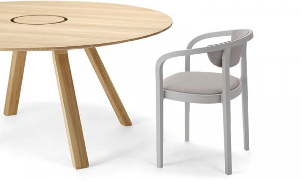 Chesa Chairは、クラシックな優美さと現代的なディテールがバランスよく融合したコンパクトなミーティング&ダイニングチェアです。前脚から背もたれへと続く曲線が快適なパーソナルスペースを作り出し、また斜めに座ることで、隣に座る相手と向かい合うことも可能です。骨格となるフレームにはサスティナブルな方法で調達された国産ナラ材、背もたれには成型合板が使用されています。穏やかで明快なラインは、このチェアの存在を際立たせると同時に、数が多くても空間に溶け込みやすいものにしています。シートと背もたれが張りのないChesa Chairと、クッションになっているChesa Chair Padがあり、木部フレームのカラーはピュアオーク、グレイングレー グレイグリーン、テラコッタの4色からお選びいただけます。これらの特徴により、家庭だけでなく、職場やホスピタリティ空間など、さまざまな用途に対応する万能なチェアです。
