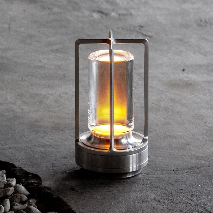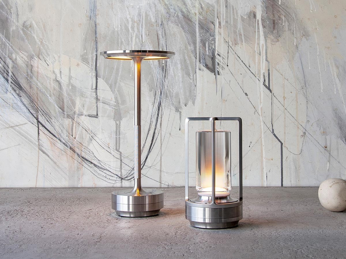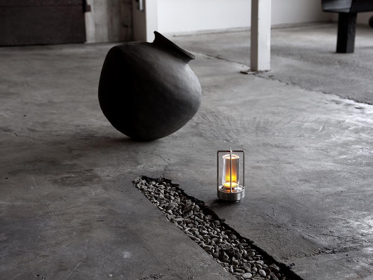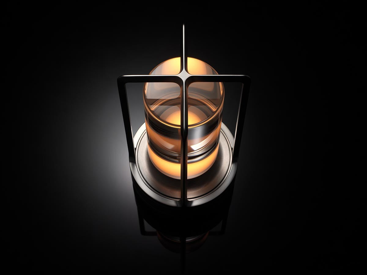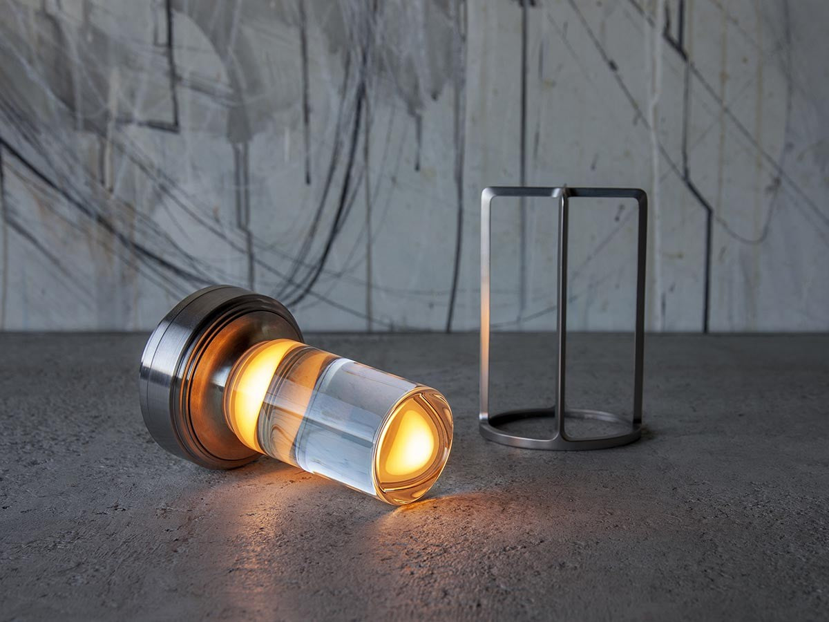 金属の塊から削り出したベースと、職人の手によって磨き上げられたクリスタルガラスのランプシェードとケージで構成されたポータブルランプ。ケージ上部の「+」の形状を最も美しく表現するために、一切の繋ぎ目をなくした鋳物に、金属素材に合わせたメッキや塗装が施されています。職人が丁寧に磨き上げた完璧に透明な無垢ガラスをランプシェードとし、光量に対して絶妙に光色が変化する新開発のLED光源を組み合わせることで、上質で透明感のある灯りを生み出しています。ベースの調光センサーにやさしく触れることで、4段階に調光が可能です。また、あらゆる方向からの強い水流にも耐えられるIP66の防水性能を備えているため、ダイニングルームでの食事のシーンはもちろんのこと、バスルームや屋外でも安心してお使いいただけます。手元を照らすタスクランプ「TURN(ターン)」と共にお使いいただくと、一層上質な空間をつくることができます。夕暮れ時から夜には、手元を照らす必要最小限の灯りと、空間に彩りと雰囲気をつくる灯りを組み合わせることで、最高に贅沢なシーンを実現します。