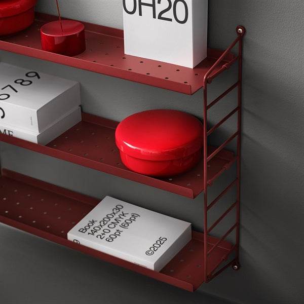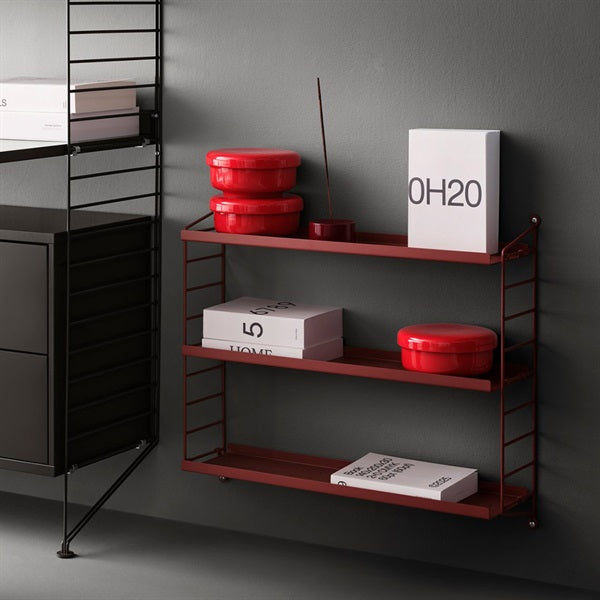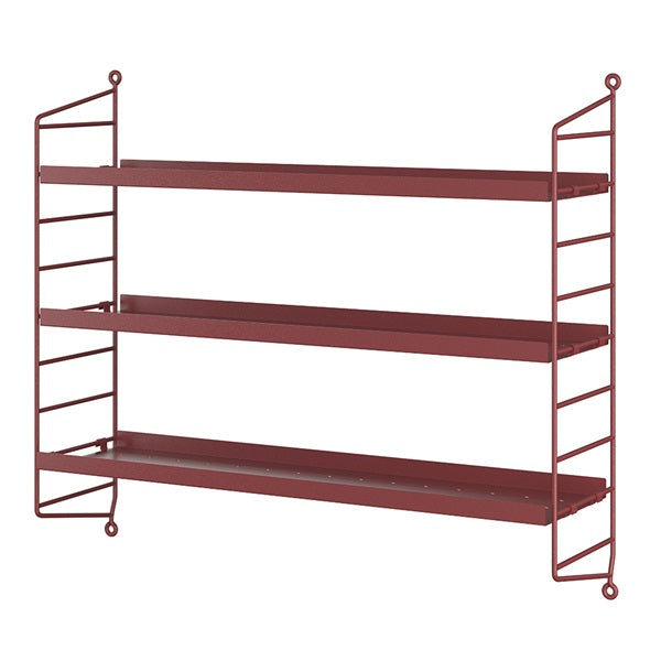 1949年にデザインされ、誕生から75年たった今でもスウェーデンで製造され、愛されている「String」のシェルフ。キッチン、バスルーム、図書館、ラウンジなど様々な場所でその良さを発揮します。サイドパネル2枚、シェルフ3枚、木ネジ(5cm)4個のセット。シェルフの耐荷重:25kg・棚板には左右があり、金具同士の間隔が広い方が向かって左側です。・表面の細かな傷、裏面など目立たない箇所の傷は良品とさせていただく場合がございます。・壁がコンクリート、石膏ボードの場合は、アンカーを壁に差込み、ネジで固定します。石膏ボード用アンカー付き。