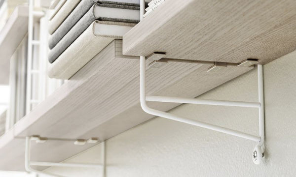1949年にデザインされ、誕生から75年たった今でもスウェーデンで製造され、愛されている「String」のシェルフ。キッチン、バスルーム、図書館、ラウンジなど様々な場所でその良さを発揮します。サイドパネル2枚、シェルフ3枚、木ネジ(5cm)4個のセット。シェルフの耐荷重:25kg・棚板には左右があり、金具同士の間隔が広い方が向かって左側です。・表面の細かな傷、裏面など目立たない箇所の傷は良品とさせていただく場合がございます。・壁がコンクリート、石膏ボードの場合は、アンカーを壁に差込み、ネジで固定します。石膏ボード用アンカー付き。