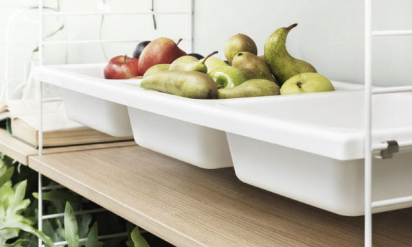 貯蔵のためのボウルの棚。ボウルの棚には3つの区画があります。プラスチック製となるので、花鉢としても使用できます。