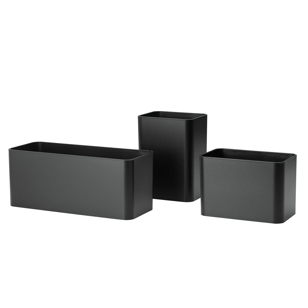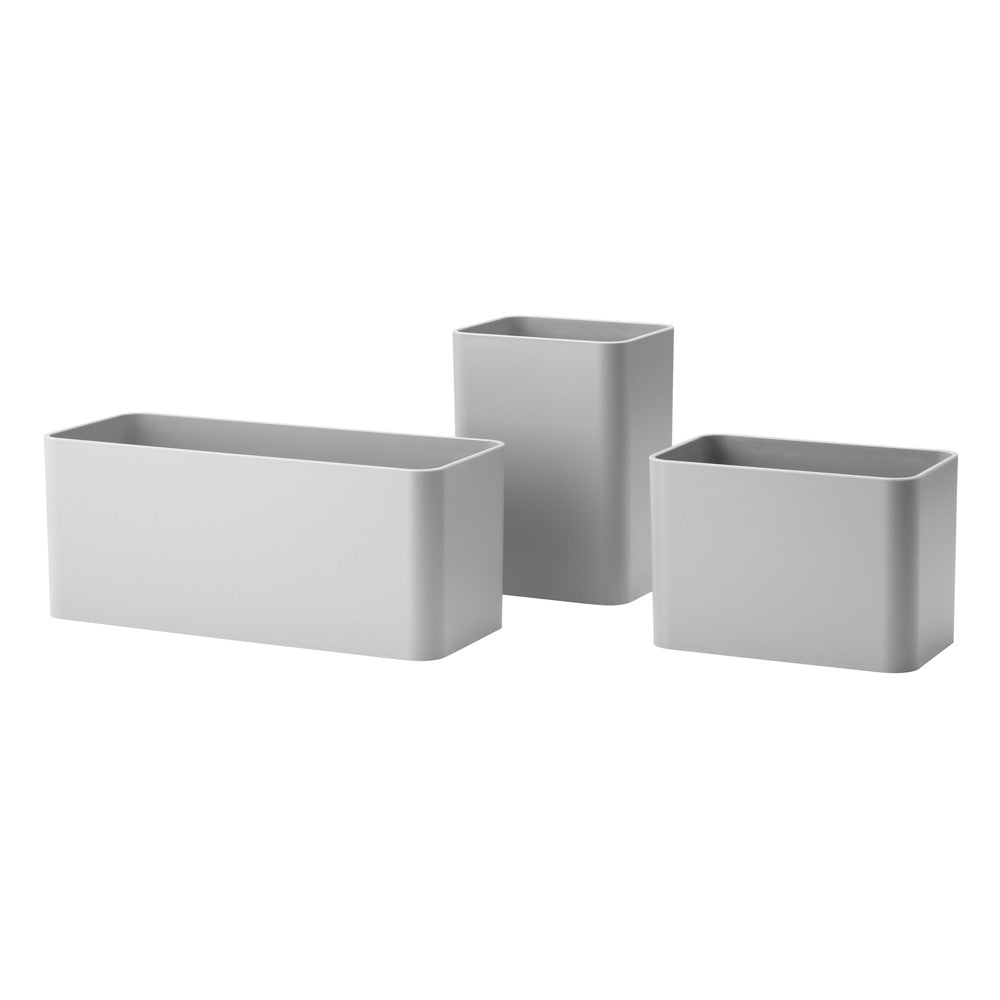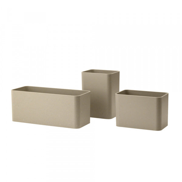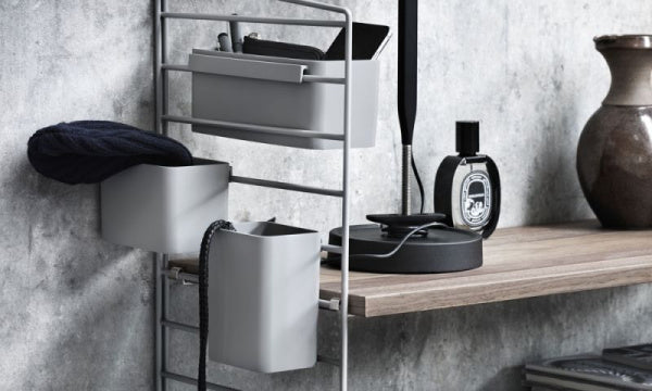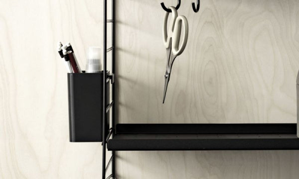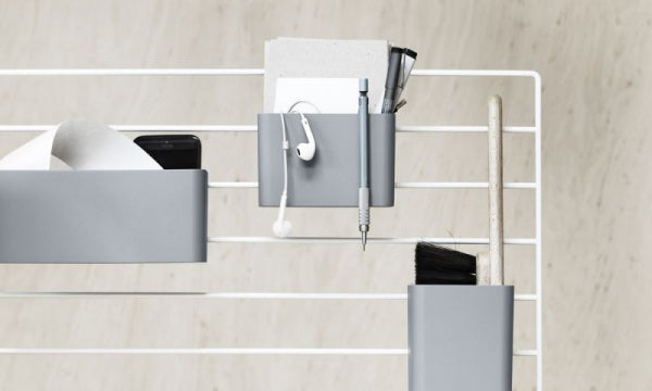 オーガナイザーはStringのアクセサリーとして設計されています。異なるサイズのオーガナイザーが3個セットになっており、StringのサイドパネルとWorksのワイヤースクリーンに引っ掛けてお使いいただけます。1つ目にペン、2つ目に定規を収納し、3つ目に植物を飾るなど楽しく整理整頓でき、キッチン用品を収納するのにも大活躍してくれます。木質繊維を40%含むバイオコンポジット素材を使用しています。