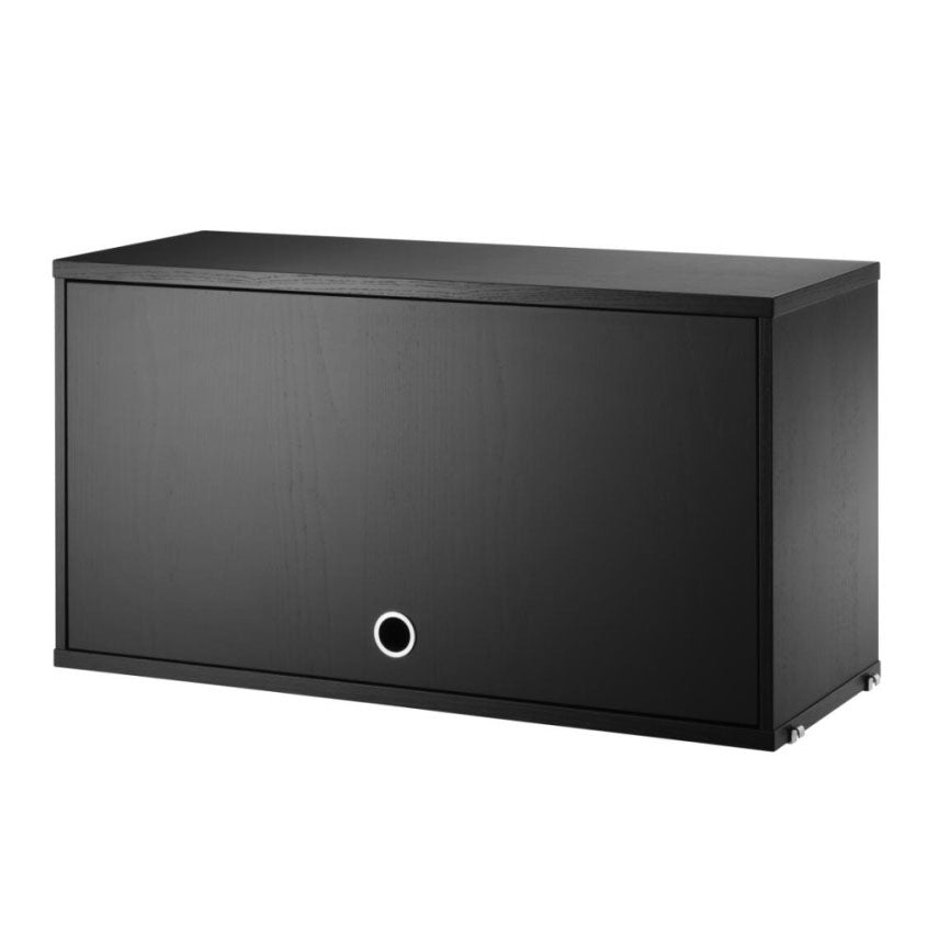 String Systemの全てのサイドパネル奥行き30cmに組み合わが可能で、内側に高さ調整可能なシェルフ1枚が付いています。内寸はW75xD28.5x H38cm。組立式。