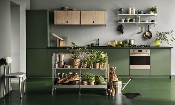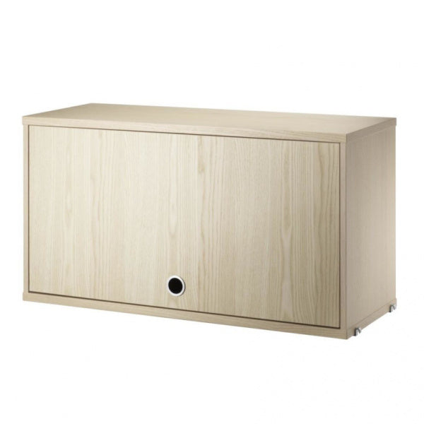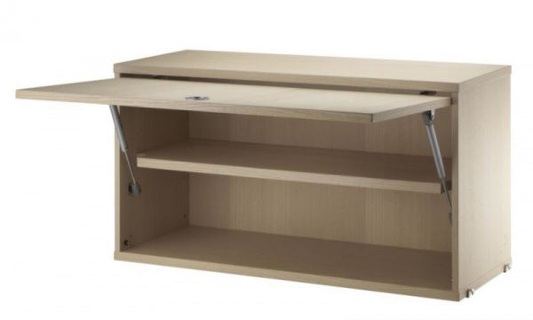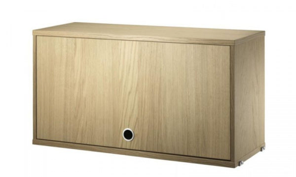 String Systemの全てのサイドパネル奥行き30cmに組み合わが可能で、内側に高さ調整可能なシェルフ1枚が付いています。内寸はW75xD28.5x H38cm。組立式。