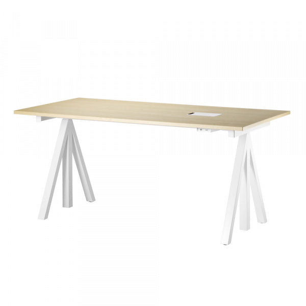 ストリングの昇降式デスクはステッピングモーター機能により、ボタンひとつで高さ715~1185mmのお好みの位置に調節できます。 立ったり座ったりしながら仕事をしたり、一人ひとりの体格に合わせた 高さでデスクを使え、仕分けや物の整理をする際は、 作業に最適な位置で効率よく進められます。前後のないデスクなのでミーティング用に、または自宅のダイニングテーブルとしても違和感はなく、簡単な会議なら立ったまま、仕事が終わってちょっとしたカクテルパーティーを開く際にはバーカウンターとしてもオススメです。パーテーションや引き出しをオプションで取り付けることが可能です。