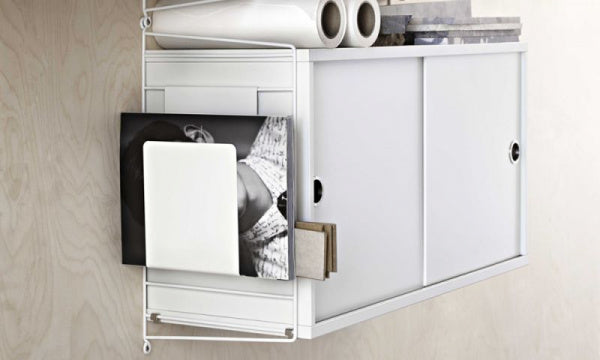 マガジンホルダーはString Systemの奥行き20cmおよび30cmのサイドパネルに取り付け可能です。シェルフの機能性をより高め、新しくクリエイティブな収納ソリューションが見つかるようなデザインです。キッチンのシェルフにプラスして料理雑誌を一箇所にまとめたり、リビングルームのコンビネーションに追加しておけば、本を読みたい時にすぐ取り出せます。サイドパネルは別売りとなります。