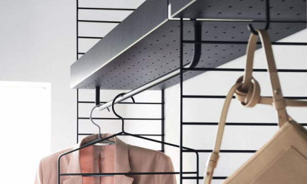 表面はパンチング加工が施されているため、専用のフックやレール、グラスハンガーやボトルトレーが取り付けられます。小物をプラスすることで用途にあった機能を追加でき、ワードローブとして、玄関のシューズラックとして、キッチン道具や食材を保管しておくパントリーとして、また子ども部屋やパウダールームなど、あらゆる場所で機能的にお使いいただけます。マットな質感がエレガントな印象です。