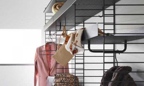 レールはシェルフの機能をさらに高めるためにデザインされたアクセサリーでメタルシェルフとガルバナイズドの棚板に合わせてお使いいただけます。3サイズあり幅53cmおよび72cmのシェルフに沿って横に取り付けるよう設計されていますが、スモールサイズのレールは奥行き24cmのシェルフに前後に設置することが可能です。コートハンガーを使って玄関ホールや寝室のワードローブとして、マフラーやショール、犬の首輪などを掛けるのにも便利です。パウダールームのタオル掛けとして最適です。各パッケージ1本入りです。