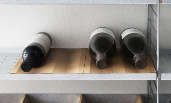 コルク製のボトルトレーはアクセサリーとしてString Systemの奥行き30cmのメタルシェルフに組み合わせてお使いいただけます。幅19 cm、奥行き30 cm、高さ2 cmのワンサイズで1個にボトル2本を収納できます。各パッケージ2個入りです。幅58cmのメタルシェルフならボトルトレーが3個、幅78cmのメタルシェルフなら4個設置できます。キッチンのコンビネーションに追加することでワインやオイルの瓶をすぐに取り出せます。