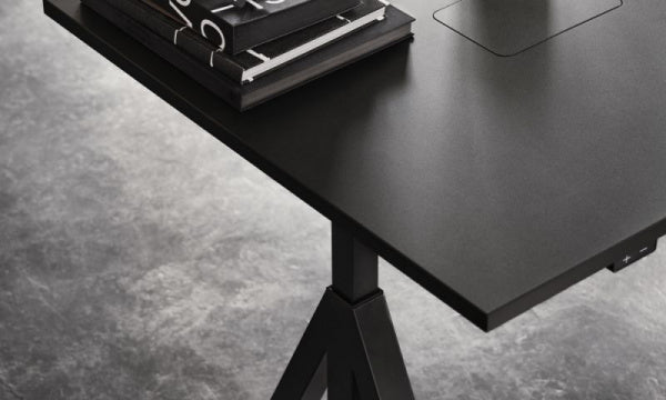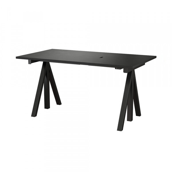 ストリングの昇降式デスクはステッピングモーター機能により、ボタンひとつで高さ715~1185mmのお好みの位置に調節できます。立ったり座ったりしながら仕事をしたり、一人ひとりの体格に合わせた高さでデスクを使え、仕分けや物の整理をする際は作業に最適な位置で効率よく進められます。前後のないデスクなのでミーティング用に、または自宅のダイニングテーブルとしても違和感はなく、簡単な会議なら立ったまま、仕事が終わってちょっとしたカクテルパーティーを開く際にはバーカウンターとしてもオススメです。パーテーションや引き出しをオプションで取り付けることが可能です。