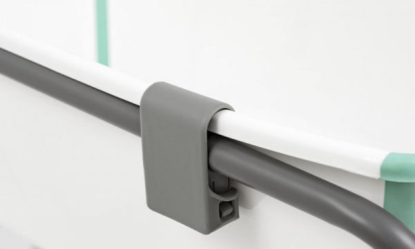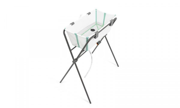 フレキシバススタンドは、赤ちゃんのお世話がしやすい高さで沐浴ができるフレキシバス(別売り)専用のスタンドです。フレキシバスをセットしたまま、コンパクトに折りたたんで簡単に持ち運びや収納ができます。また、タオル掛け、排水ホース&プラグが付属し、カップホルダー(別売り)を設置してシャンプーなどボトルをセットして置くこともできます。スタンドの安定性を確保したトリプルロックメカニズムと、バスタブが外れるのを防ぐダブルロックのクリップで、安全性を最優先したしっかりとした構造です。