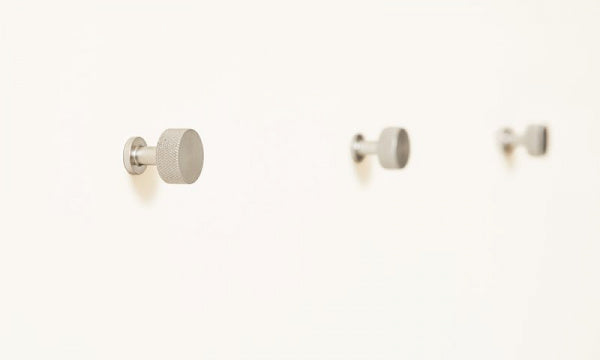 アングルフックは、旋盤で加工されたスチール製のフックです。スチールの表面は格子状になっており、手触りがよく、衣類やタオルが滑り落ちない構造になっています。フックとしてだけでなく、引き出しや戸棚などの取っ手としても適しています。耐荷重:石膏ボード:25kg、コンクリート:50kg、板壁・板柱:40kg<仕様・原産国変更のお知らせ>現仕様の在庫がなくなり次第、下記仕様や原産国の変更を予定しております。同商品の追加購入時はご注意ください。なお、価格の変更はございません。詳細をご希望の方はお手数ですがご購入前にお問い合わせください。フック部分格子模様のデザインが若干細かくなります。原産国:デンマークからポルトガルへ変更。化粧箱が円柱型から立方体へ変更。