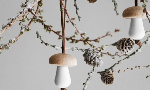 ローゼンダールのフォレスト・テイルズは北欧シンプルな自然をモチーフにした、シンプルでミニマルなクリスマスオーナメントシリーズです。シンプルでミニマルなクリスマスを演出します。オーク材のマッシュルームにペイントを施し、雪のようなデザインになっています。ヴィ―ガンレザーのストラップ付。