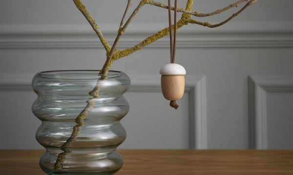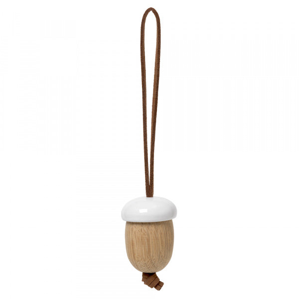 ローゼンダールのフォレスト・テイルズは北欧シンプルな自然をモチーフにした、シンプルでミニマルなクリスマスオーナメントシリーズです。シンプルでミニマルなクリスマスを演出します。ドングリはオーク材でできており、白のペイントは雪のようなデザインになっています。ヴィ―ガンレザーのストラップ付。