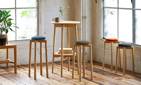 お料理中や、ブーツを履くとき、ヘアドライや歯磨きの最中。ちょっと腰掛けるものがほしいなと思うこと、ありませんか?そんな「ちょっと」を叶えてくれる、かわいらしいスツールです。幅33cmというコンパクトサイズで、キッチンや玄関、パウダールームなどの限られたスペースでも場所を選ばず置くことができ、持ち運びも簡単。すらっと伸びたスリムな脚に、直径22cm のきのこのようなちょこんと丸い座面は、インテリアとしても最適です。おしゃべりに、読書に、ティータイムに。毎日がちょっと楽しくなりそうです。