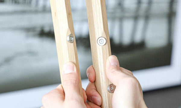 3本の木材を強力な磁石で固定します。女性でも簡単に組み立てられます。ポイントに2か所、別の木材を使っています。