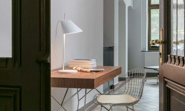 眩しさのない光を下方に広げます。シェードは傾斜、回転、上下移動するフレキシブルな機能を備え、理想的な位置に光を向けることが可能なため、リビングルームやワークルーム等で効果を発揮します。また、上部の細い開口部からもソフトな光を発します。LEDは15-100%で調光可能で、タイマー機能も備えています。