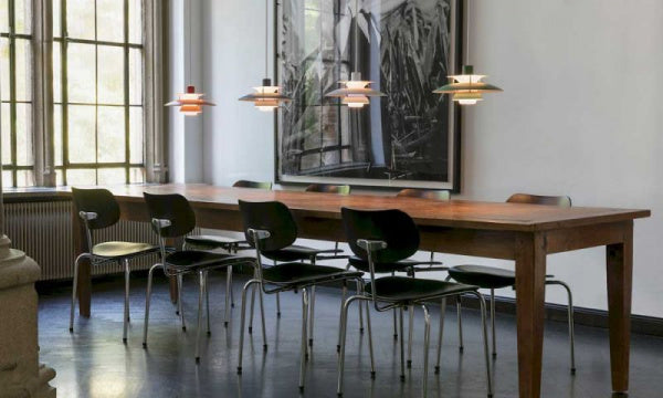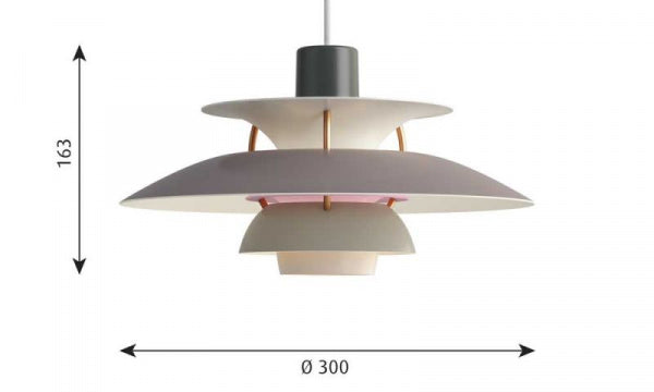 名作PH5を直径30センチにリサイズ、グレア(眩しさ)をまったく外に出さず、大部分の光を下方に集め、同時に、ランプ自体も自らの光で照らす機能美を備えたデザインです。カラータイプは、トップシェードからボトムシェードに向かって色合いを弱めるグラデーションを持たせています。全般照明に適さないランプとなります。ダイニングテーブル向き。【1958年デザイン】※取り寄せ商品のため、ご注文後のキャンセルはご遠慮ください。
