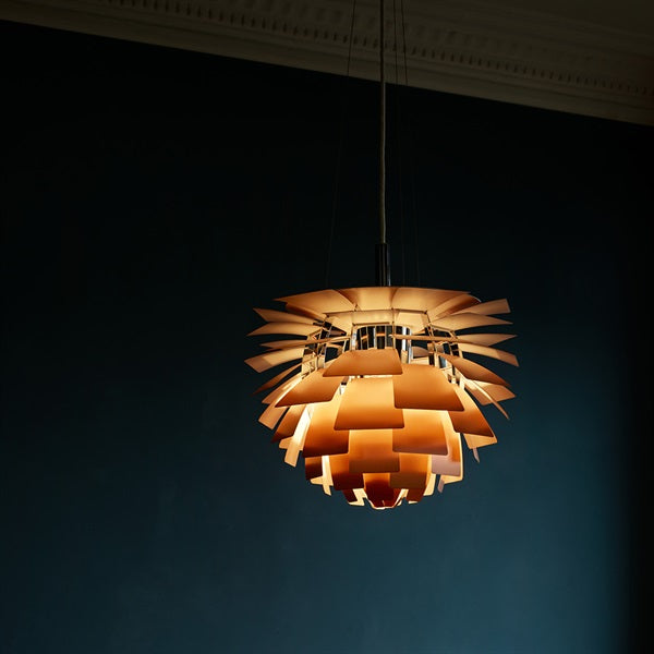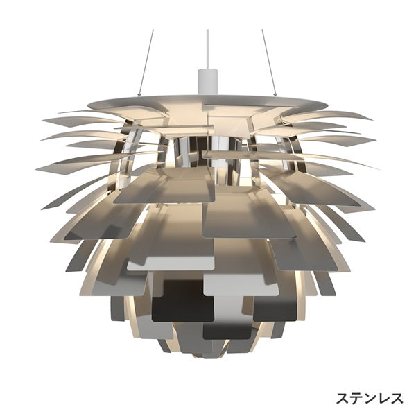 1958年、ポール・ヘニングセンがコペンハーゲンのレストラン「ランゲリニエ・パヴィリオン」のために設計した「PHアーティチョーク」。今日でもレストランを特徴するデザインアイコンとして、空間全体を飾っています。どの角度から見ても完全にグレア・フリーの光を作りだす独特のフォルム。正確に配置された72枚の羽が、アーティチョークの名前を象徴しています。また、現在も製造プロセスの大部分が手作業で行われ、名作としての高い品質を生みだしています。【1958年デザイン】※取付には電気工事が必要となります。※IP20 屋内用※取り寄せ商品のため、ご注文後のキャンセルはご遠慮ください。