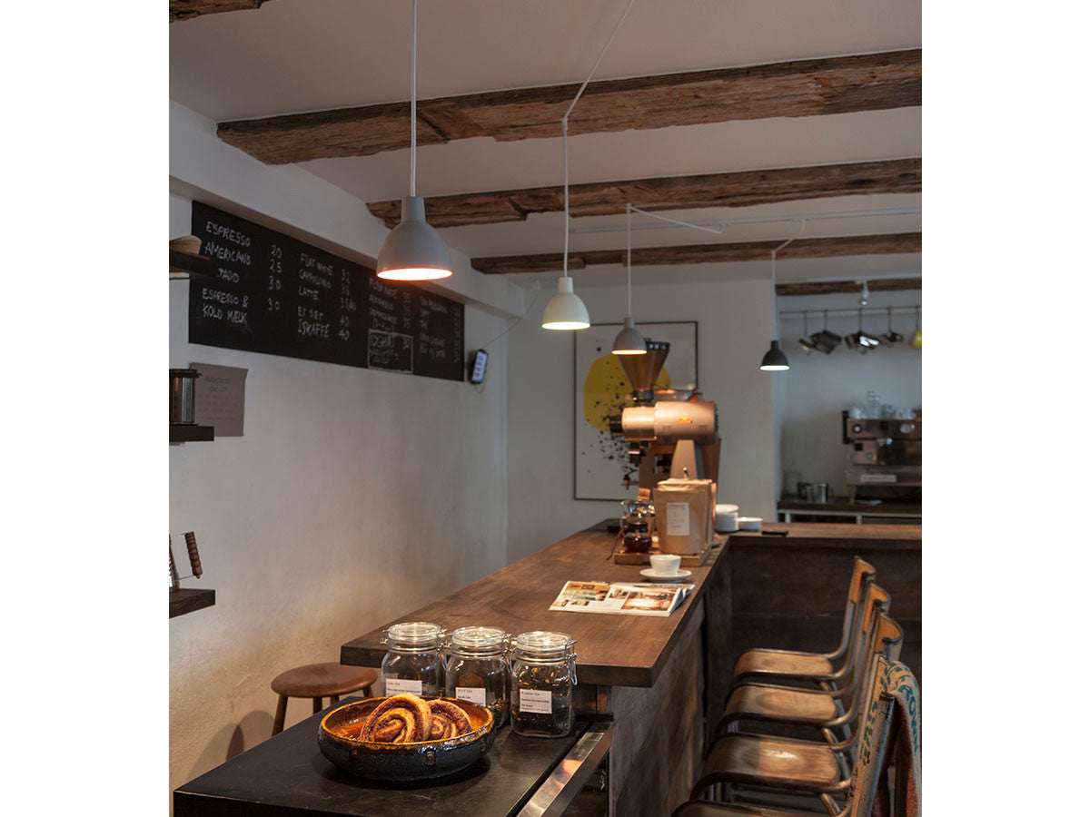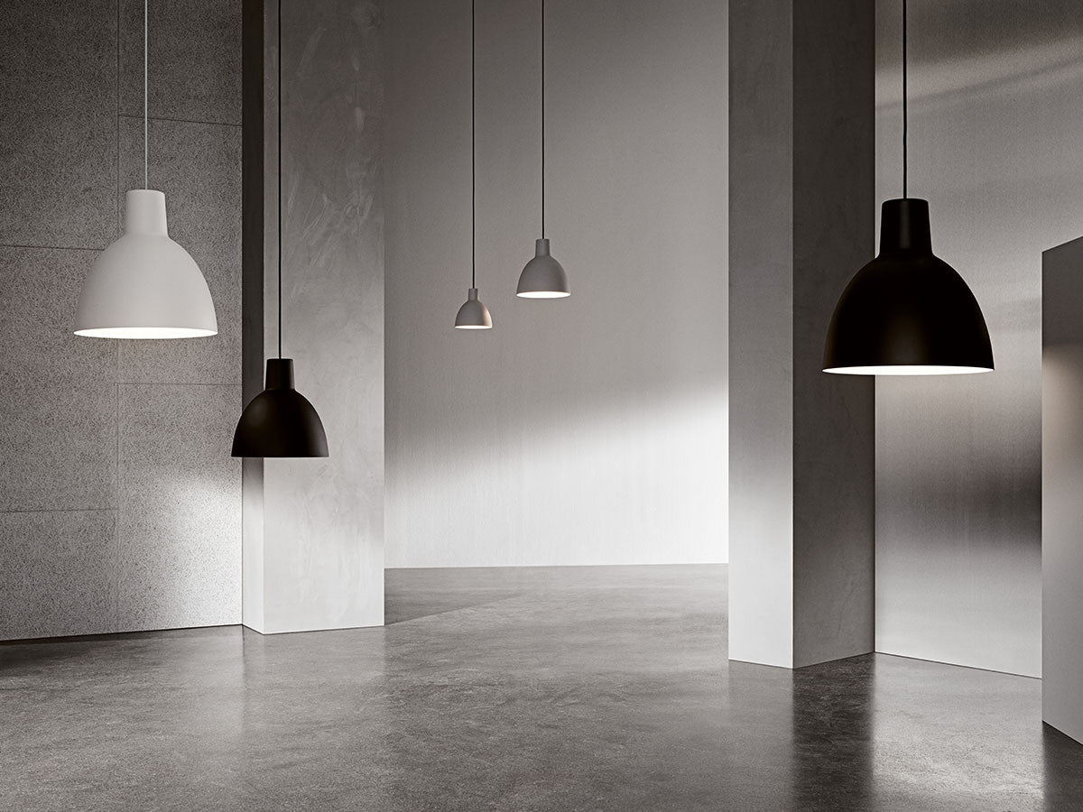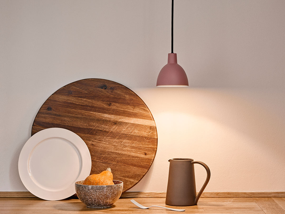 ルイスポールセンのデザインチームが、ポール・ヘニングセンが手掛けた最後の街路灯で使用された楕円形の反射板をもとにして開発したトルボーシリーズ。眩しい光を人に直接見せることなく空間を照らす、というヘニングセンの理念どおり、下方を重点的に照らします。内側がマットホワイトに塗装された卵のような形のシェードは光を均等に拡散し、部分照明としても、居心地の良い雰囲気をつくる間接照明としても適しています。ソフトで端正なフォルムは、一列に並べても、複数を集合的にアレンジしてもバランスが良く、単色でも違う色を組み合わせても空間に美しく映えます。