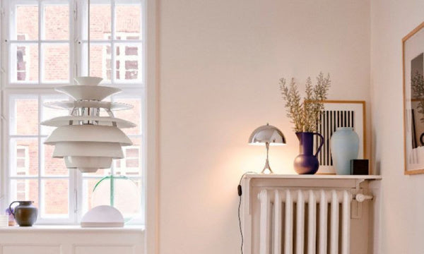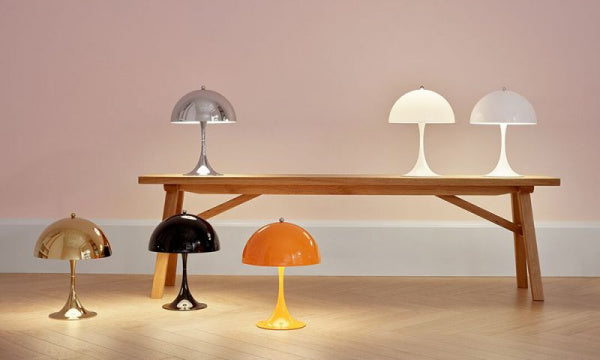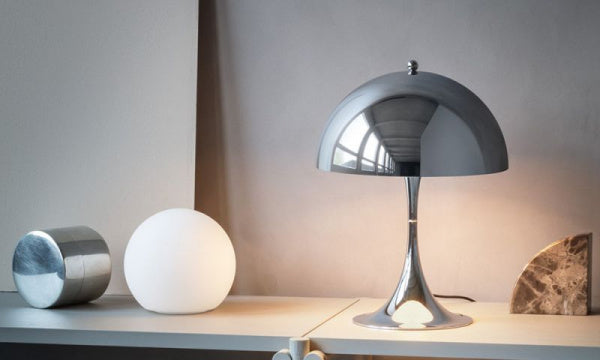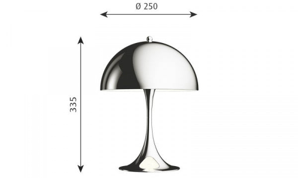 タイムレスな幾何学的フォルムのテーブルランプです。小ぶりなので、テーブル、棚、出窓などの狭いスペースにも置くことができます。光源の眩しさは見えず、下向きの光が支柱とベース部分で反射され、アクセントライトとなります。【1971年デザイン】