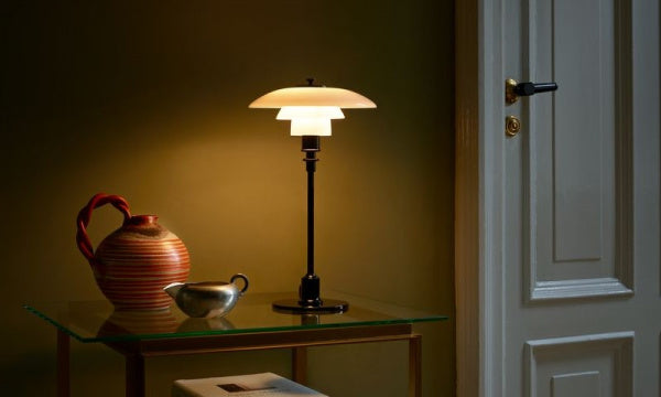 PHシリーズ最小のテーブルランプ。デスクやテーブル、部屋のコーナーなど、いろいろな場所に光のエリアをつくり、部屋に美しさと品位を与える名作です。眩しさを取り除き、光をテーブル面と上方の空間に広げるという機能にもとづいたタイムレス・デザインであるため、どのようなスタイルの空間にも調和します。第一級のクラフツマンシップによって製造されています。