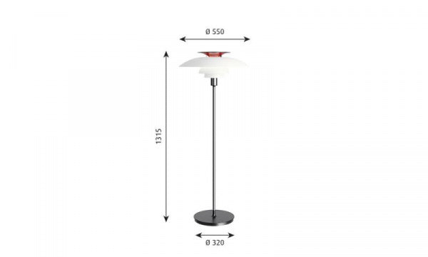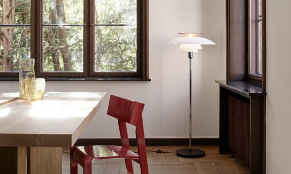 アクリル製シェードが拡散するソフトな光と、赤いトップシェードによる反射光が、部屋をあたたかい雰囲気にします。へニングセンの生誕80周年を記念して1974年に発売したものです。