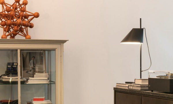 眩しさのない光を下方に広げます。シェードは傾斜、回転、上下移動するフレキシブルなメカニックを備え、理想的な位置に光を向けることが可能なため、リビングルームやワークプレイス等で効果を発揮します。また、上部の細い開口部からもソフトな光を発します。LEDは15-100%で調光可能で、タイマー機能も備えています。