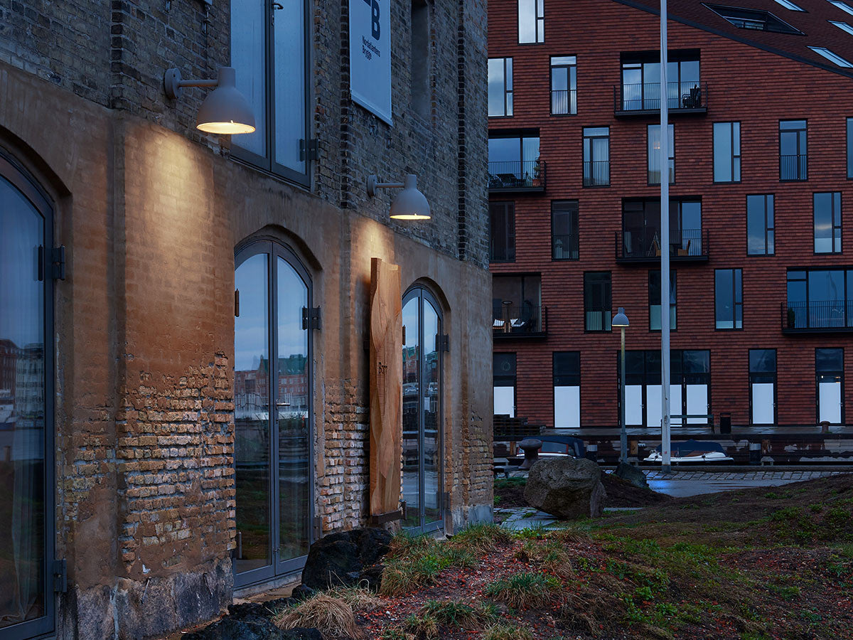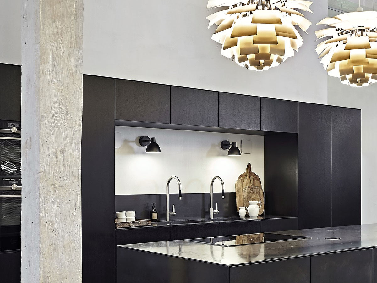 シンプルなフォルムが多くのアーキテクトやインテリアデザイナーを魅了しているトルボーシリーズの、スモールサイズのウォールライトです。眩しさのない光で壁面を明るく照らします。住宅のエントランス用に開発したものですが、建築空間のインテリアに複数並べて使用してもリズム感ある効果的なアクセントライトとなります。かつてポール・ヘニングセンが採用した楕円形リフレクターを使った「トルボー 155 ウォール」は、2006年に発売されました。このウォールランプは非常に頑丈で、かつ控え目な佇まいです。端正なデザインが幅広い建築物に適応します。