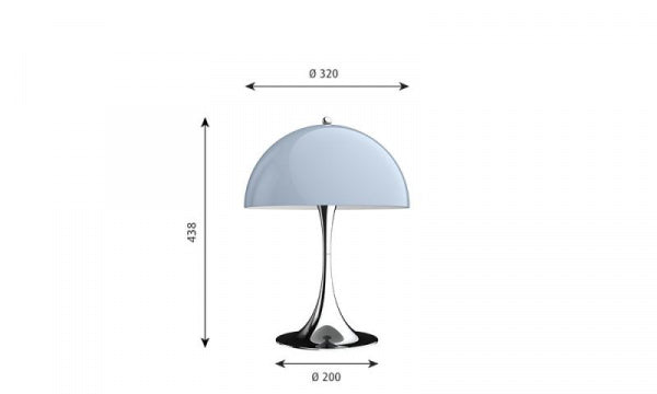タイムレスな幾何学的フォルムのテーブルランプ「パンテラ 400 テーブル」と小ぶりな「パンテラ 250 テーブル」の中間サイズです。半球形シェードがグレア・フリーの柔かい拡散光を周囲の空間にひろげます。下向きの光が支柱とトランペット型のベース部分で反射され、心地よい雰囲気を作り出します。