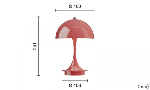 オリジナルデザインはそのままに、小さくて充電式の「パンテラ 160 ポータブル V3」はまぶしさのない、柔らかく快適な光を発します。オパールタイプのシェードは光を透過し、その拡散光とステム部分の反射光によって、優しい雰囲気を作りだします。オペークタイプのシェードは光を透過させずに下方を照らし、ステム部分が反射するイルミネーションと合わさって、より落ち着きのある雰囲気を作ります。コードレスのため持ち運びが簡単で、どこにでも北欧らしい、心地よい雰囲気を作ることができます。LED光源を内蔵し、スイッチのオン・オフと段階調光は、シェードの上の丸いボールをタッチして行います。 ・光源:組込式LED2.5W 全光束:150lm 電球色:2700K ・調光機能:Short press:10%/33%/100%の3段階調光、Medium press:Power off、Long press:Lock/Unlock ・充電方法:付属のUSBケーブル(USB-C to USB-C)でパソコンまたは市販のUSB対応ACアダプターから充電。ワイヤレス充電器(Qi規格)非対応。 ・連続点灯時間: 100%の明るさで約7.5~8.5時間点灯 33%の明るさで約25.5時間点灯 10%の明るさで約79時間点灯 ・バッテリー:リチウムイオン電池 ・防塵防水(※) IPクラス:IP44 ※防水性能、防塵性能は永続的に維持されるものではありません。 ・バッテリー交換が有償にて対応可能となりました。ご希望の場合はお問い合わせください。