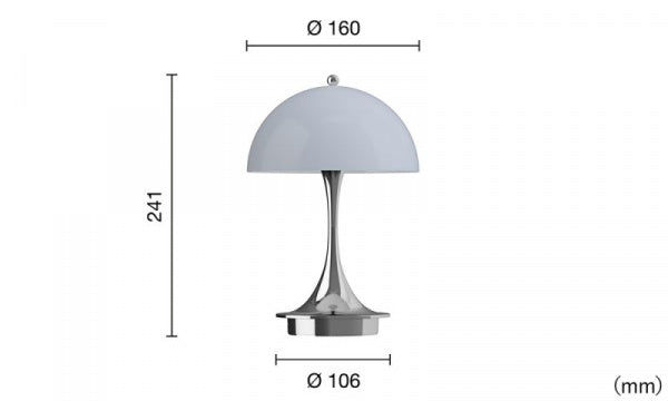 オリジナルデザインはそのままに、小さくて充電式の「パンテラ 160 ポータブル V3」はまぶしさのない、柔らかく快適な光を発します。オパールタイプのシェードは光を透過し、その拡散光とステム部分の反射光によって、優しい雰囲気を作りだします。オペークタイプのシェードは光を透過させずに下方を照らし、ステム部分が反射するイルミネーションと合わさって、より落ち着きのある雰囲気を作ります。コードレスのため持ち運びが簡単で、どこにでも北欧らしい、心地よい雰囲気を作ることができます。LED光源を内蔵し、スイッチのオン・オフと段階調光は、シェードの上の丸いボールをタッチして行います。光源:組込式LED2.5W 全光束:150lm 電球色:2700K ・調光機能:Short press:10%/33%/100%の3段階調光、Medium press:Power off、Long press:Lock/Unlock ・充電方法:付属のUSBケーブル(USB-C to USB-C)でパソコンまたは市販のUSB対応ACアダプターから充電。ワイヤレス充電器(Qi規格)非対応。 ・連続点灯時間: 100%の明るさで約7.5~8.5時間点灯 33%の明るさで約25.5時間点灯 10%の明るさで約79時間点灯 ・バッテリー:リチウムイオン電池 ・防塵防水(※) IPクラス:IP44 ※防水性能、防塵性能は永続的に維持されるものではありません。 ・バッテリー交換が有償にて対応可能となりました。ご希望の場合はお問い合わせください。