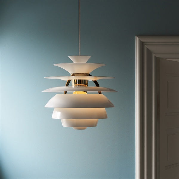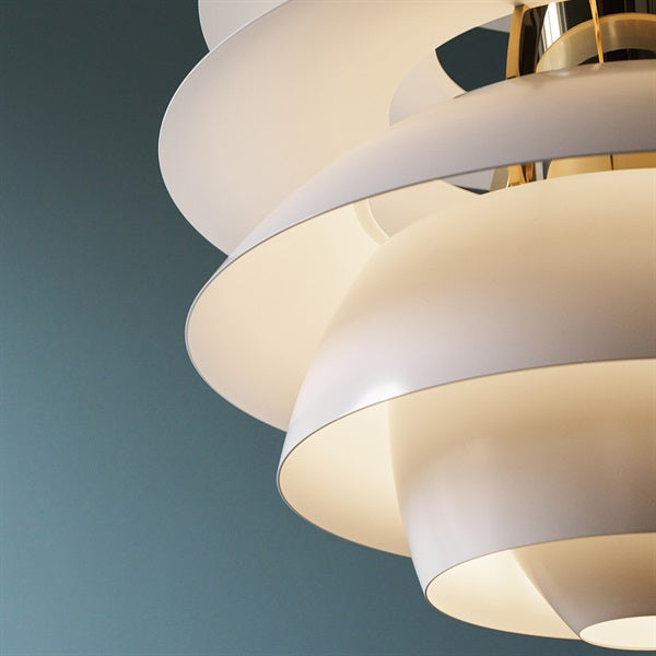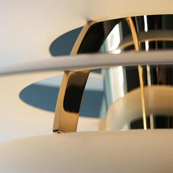シェードの両面を光沢とマットに塗り分けており、美しい光の効果を生みだします。光源の光はすべてのシェード内面に同じ角度であたり、グレアをまったく生じないデザインです。1924年の8枚シェードのランプをリ・デザインして1958年に発表。1983年に既製品化しました。工芸品と呼ぶにふさわしい名品です。全般照明に適したランプとなります。リビングルーム、ベッドルーム、ダイニングテーブル向き。【1958年デザイン】※シェード表面が現行品のホワイト(グロス値95)よりマット(グロス値40)な仕上げになります。※取り寄せ商品のため、ご注文後のキャンセルはご遠慮ください。