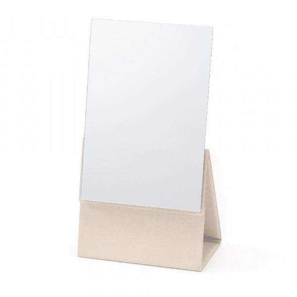フォールディングミラーの高さが合わなくてティッシュの箱や本などを下に敷いて使ってませんか?2 Way フォールディングミラーなら、ノーマルポジションと10cm高いハイポジションの二通りの高さで「もう少し高さがあったら」を解消し、テーブルが低くて高さが合わない時でもメイクがしやすくなります。しっとり落ち着いた質感の生地の本体に、自然で純粋な色を映すことができる、特許取得のナピュア ミラーを使用。くすみの原因となる鉄分をより多く取り除いた透明度の高いガラスと、色の再現性が高い反射金属との組合せにより、本来の姿をありのままに映し出します。肌の色がより鮮明に映ることで、自分にあったファンデーションの色味がわかり、メイクがグッと良い仕上がりに。美容業界のプロの方々にも支持されています。ノーマルポジションではロックラインでミラーの角度を自由に調整でき、ハイポジションではノーマルポジションよりも約10cm高い位置でお使いいただけます。折りたためば場所を取らずにコンパクトに収納できます。