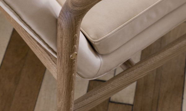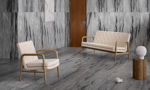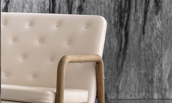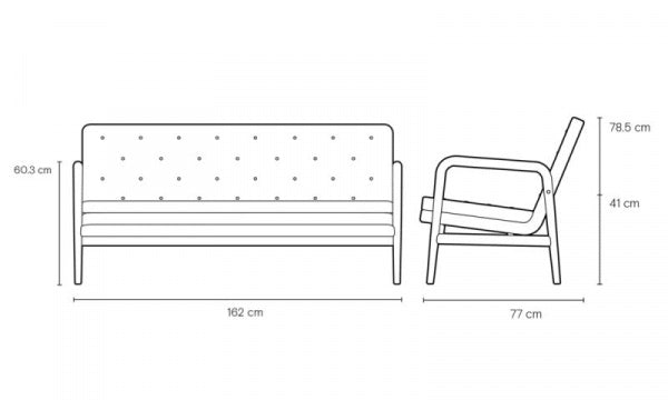 フォイエソファは、ヴィルヘルム・ラウリッツェンが1945年に設計したコペンハーゲンのラジオハウス(現:デンマーク王立音楽院)のためにデザインされました。2022年に創立100周年を迎えたVilhelm Lauritzen Architectsとの密接な協働により、生産が開始されました。オリジナルはチーク及びビーチ材が使用されていましたが、製品化するにあたりFSC&認証を受けたオーク材のフレームが採用されています。ファブリックもしくはレザー張りの組み合わせが特徴的で、座面と背もたれが浮いているかのような独特な相互作用を生みだしています。座面や背もたれには手作業で作られたボタンが施されており、その張り込みには手間のかかる精密な作業と職人技が要求されます。接合部の真鍮ネジもエレガントさを演出しています。3つのパーツから成るアームレストと脚は、継ぎ目が目立たないよう細心の注意を払って手作業で磨き上げられています。【1945年デザイン】※取り寄せ商品のため、ご注文後のキャンセルはご遠慮ください。