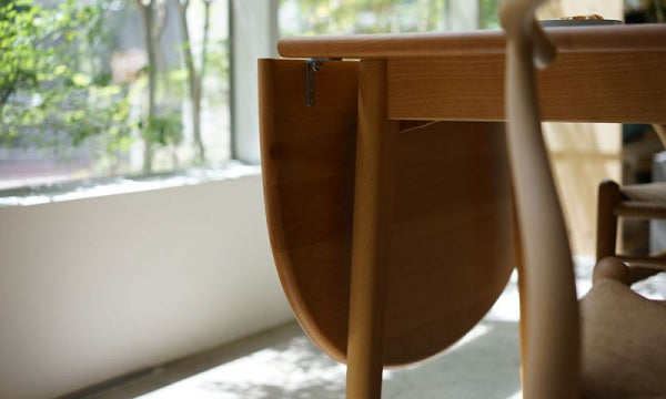 ハンスJ.ウェグナーが1982年にデザインした、エレガントなダイニングテーブル。天板のサイズは138×90cm。巾49cmの伸長板を2枚搭載した伸長式テーブル、最大236cmまで伸長することが可能です。素材はビーチのムク材、仕上げは木材の風合いを生かしたオイル仕上げ(オイルフィニッシュ)となっています。天板の両端にヒンジで固定された伸長板は、来客時などに瞬時にセットすることが可能です。天板および伸長板のエッジ断面は丸型。伸長板は半円形となっているため、広げた時は楕円形テーブルとなります。【1982年デザイン】※開梱費、段ボール等の梱包材の引取りは送料に含まれております。※組立式となり、組立費は別途4950円掛かります。ご希望の場合は、ご注文時の備考欄・ご要望欄に「組立希望」と記載してください。ご注文後にご依頼方法をお伝えいたします。※取り寄せ商品のため、ご注文後のキャンセルはご遠慮ください。
