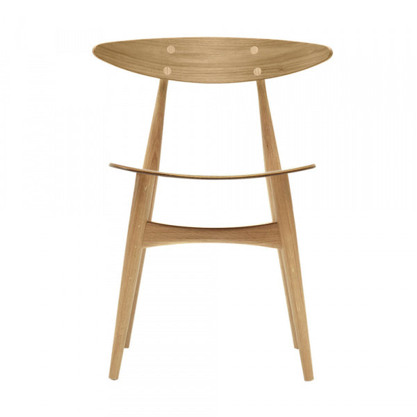 CH33Tはウェグナーがカール・ハンセン&サンのために、1957年にデザインしたデニッシュモダンの定番。発表から10年間生産されその後途絶えていましたが2012年に復刻されました。ナチュラルの他に、ウェグナー自身のカラー・セレクションによるカラーバージョンも追加され、豊富な色からお選び頂けます。軽快で美しいシルエット。ウェグナーならではの意匠が随所に見られるデザインです。各部分のエッジは丸く面取りすることで、柔らかいオーガニックな印象を強調。テーパーのかかった脚は、椅子を軽快に見せるほか、クロス部分を太くすることで、椅子に荷重を支えるだけの十分な強度を与えています。美しいオーク材、ウォルナット材を使用した木製のフレーム、そして50年代、60年代のデザインの典型ともいえるクリーンなシルエット。人間的な温かみに満ちたCH33Tは、コンテンポラリーな空間に最適です。座面に皮革、ファブリックで張地加工を施したCH33Pもあります。【1957年デザイン】※取り寄せ商品のため、ご注文後のキャンセルはご遠慮ください。
