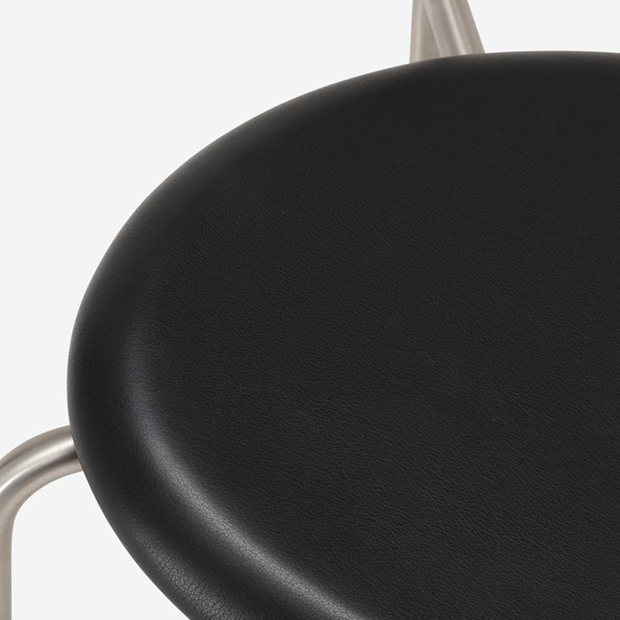 座面の張地、木材、そしてインダストリアルなスチールをミニマルなフォルムにまとめたダイニングチェアです。多目的に使用できる柔軟な機能性とシンプルでエレガントなフォルムが特徴です。置く場所を考慮し、スタッキングも可能です。