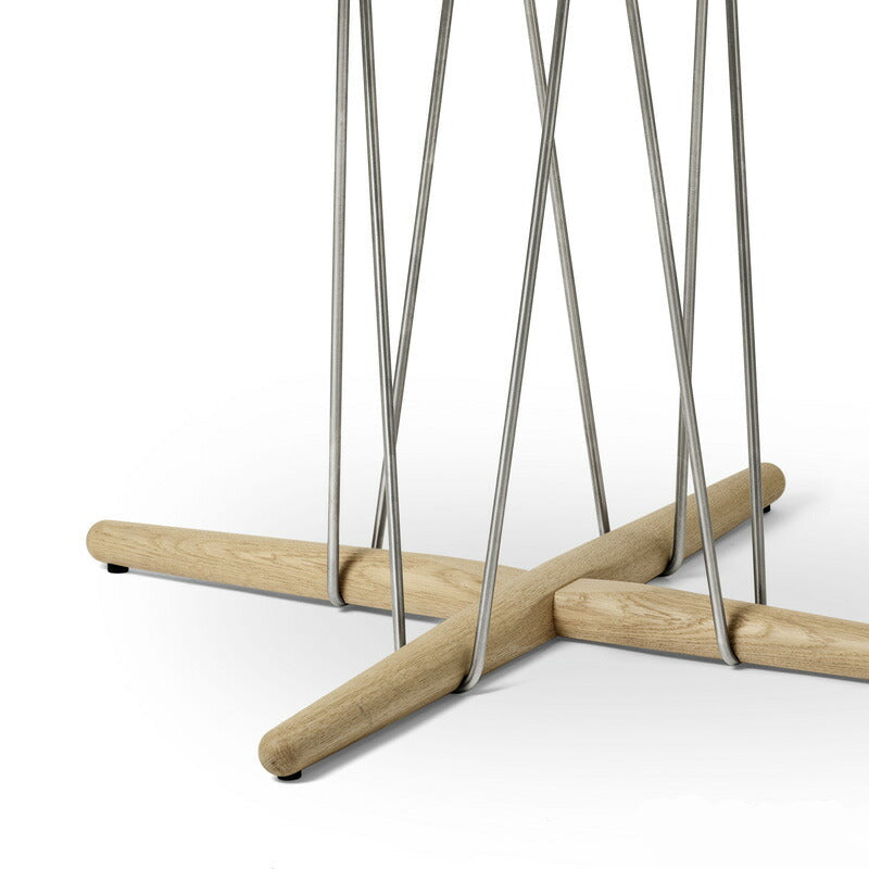 革新的なセンスとクラフトマンシップが融合した人々が集うことを念頭にデザインされたエンブレイス・テーブルです。木材とスチールワイヤー、異素材の組み合わせで、天板が宙に浮いているような軽快さと機能性を追求したスタイリッシュなテーブルです。