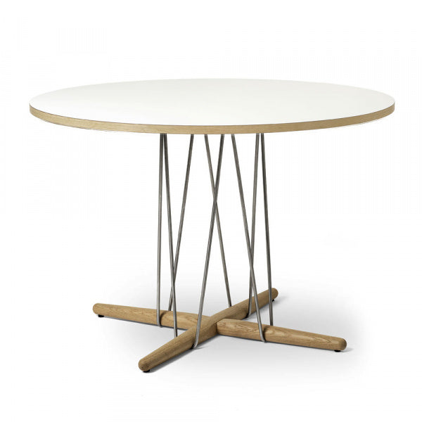 オーストリア出身のデザイナートリオ、EOOSがカール・ハンセン&サンにデザインしたE020。テーブルを構成するのは、木製のベース、スチールワイヤー製の支柱、そして円形の天板。彫刻的ともいえる斬新なフォルムを形成しています。空を舞うカイト(凧)にインスピレーションを得ています。中央の支柱で天板を支えることで、使用時に脚のスペースを最大限に確保。機能性を十二分に追求したデザインとなっています。人の交流とコミュニケーションを考慮した円形の天板もこだわりの一つ。集いやすく、十分に脚のスペースを確保した構造がたいへん特徴的です。繊細でありながら、優れた安定感を持つスチールワイヤー製の支柱。天板が宙に浮いたような軽快な印象を創り出しています。エンブレイス・チェアやエンブレイス・アームチェアに最適なテーブルです。【2019年デザイン】※組立式となります。組立をご希望の場合は別途4950円掛かります。ご注文時の備考欄・ご要望欄に「組立希望」と記載してください。ご注文後にご依頼方法をお伝えいたします。 ※取り寄せ商品のため、ご注文後のキャンセルはご遠慮ください。
