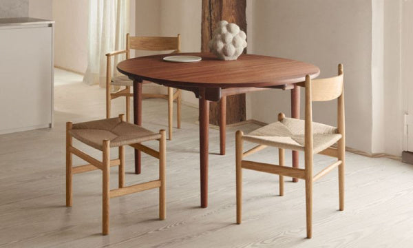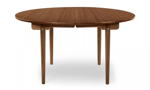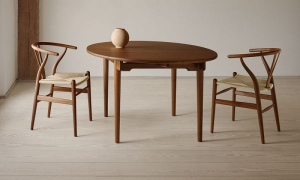 ダイニングテーブル CH337は、1962年にハンス J. ウェグナーによりデザインされました。日常使いから、お客様を招いたパーティまで、あらゆる場面に対応するダイニングテーブルです。テーブルを特徴づけるのは、幾何学的な直線とオーガニックな曲線の美しいバランス。楕円形の天板と下方に向かい細くなるテーパー加工が施された丸脚。そして、ディテールへのこだわりが、このテーブルをより完成されたものにしています。 そして同じものが二つと存在しない天板のユニークな木目が、このテーブルをより個性的で特別なものにしています。伸長式のため必要に応じて伸長することが可能です。※伸長板は別売りとなります。【1962年デザイン】1962年にデザインされましたが本格的に生産が始まったのは2011年になってからです。※取り寄せ商品のため、ご注文後のキャンセルはご遠慮ください。
