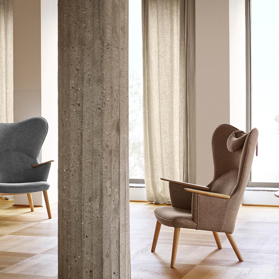 豊かな創造力を斬新な家具の追求に捧げた伝説的なデザイナー、ハンス J. ウェグナーが1954年にデザインしたCH78ママ・ベアチェア。カール・ハンセン&サンでは、椅子の巨匠として知られるウェグナーへのトリビュートとして、この椅子を復刻しました。ママ・ベアの愛称で知られるCH78ラウンジチェア。