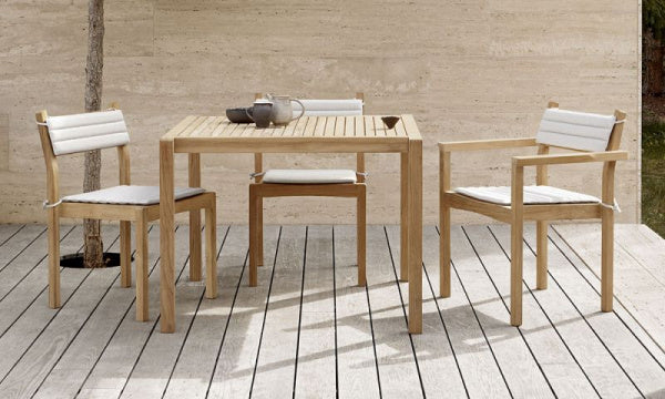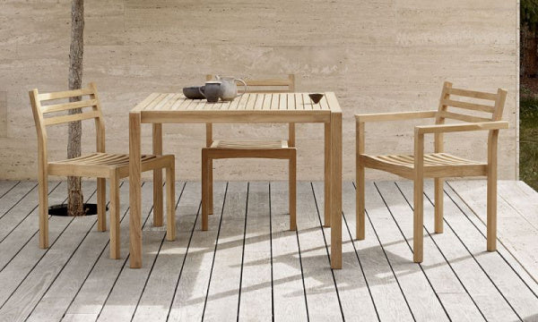 AH902アウトドアダイニングテーブルは、デンマークの建築家、アルフレッド・ホーマンがデザインを手がけたAHシリーズのひとつです。丸みを帯びたソフトなディテールとかっちりとしたラインのエレガントな組み合わせが個性的ながらも、シンプルで使いやすさも併せ持っています。滑らかな仕上がりの接合部は、熟練した職人の手作業での丹念な研磨によるものです。全11種類のバリエーションがあるAHアウトドアシリーズで組み合わせることができます。人の手で積み上げられる限りのスタッキングが可能なディテールは、フォルムと機能を徹底して追求したホーマンの姿勢が現れています。※AHアウトドアシリーズには、FSC&認証を受けた未処理のチーク材を使用しています。硬くて丈夫なチーク材は変化する気候に適した木材で、天然オイルを多く含むため耐久性があり、菌類による侵食にも強いことから屋外用の家具に最適です。未処理のチーク材は、経年変化で徐々にシルバーグレーの色合いを帯びるのも特徴です。【2022年デザイン】※組立式:付属の六角レンチでお客様にて組立てをお願いいたします。